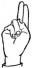 На ћирилици написано УНА ШЋЕЛОВИЋ састоји се из 11 слова [?]. Исписано ћириличном једноручном азбуком за глувонеме: